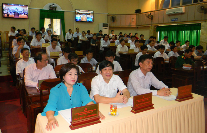 Các đại biểu tham dự hội nghị tại điểm cầu Quảng Bình