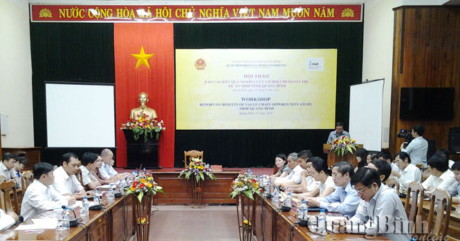 Tại hội thảo, đại diện nhóm tư vấn quốc tế đã báo cáo kết quả phân tích các ngành hàng và tổng quan các chuỗi giá trị được chọn gồm: bò, gà, keo, lạc, lúa, ngô, mật ong và mây tre đan; đồng thời trình bày các chuỗi mới ở Quảng Bình và những kết qủa ban đầu giúp dự án từng bước hoàn thành kế hoạch năm 2014 và mục tiêu dự án đã đề ra. Hội thảo đã dành thời gian cho các đại biểu thảo luận, bày tỏ sự quan tâm và thống nhất sự lựa chọn các ngành hàng để Dự án SRDP tỉnh hỗ trợ, tạo tiền đề cho việc xây dựng kế hoạch hành động chuỗi giá trị trong thời gian tới.