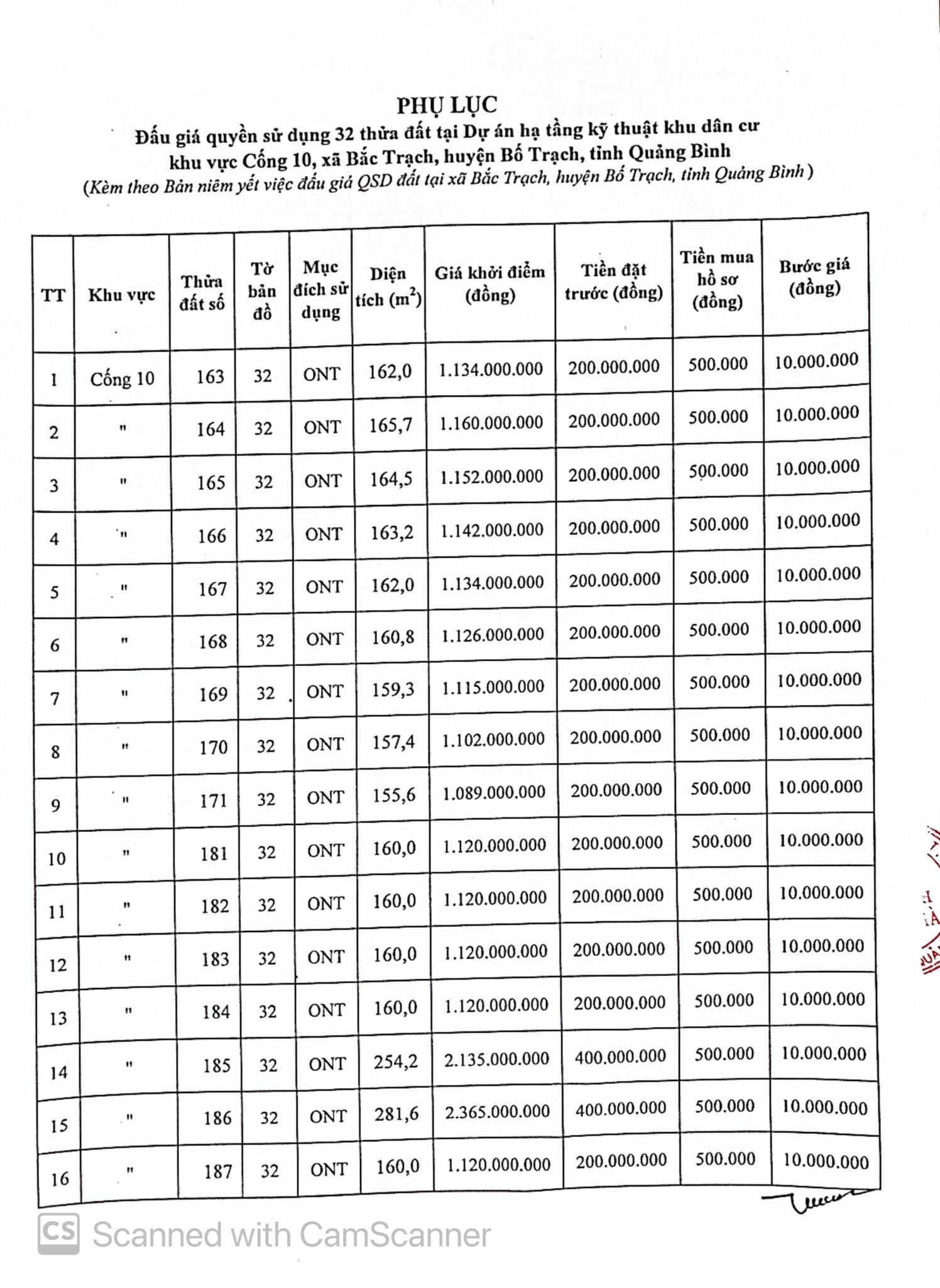 Thông tin chi tiết các lô đất tại đây: Phụ lục 1, Phụ lục 2